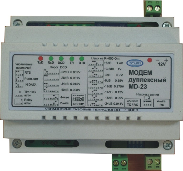 Модем MD-23 – Апаратна підтримка протоколу V23. Модем MD23 призначений для апаратної підтримки обміну даними по каналу зв’язку між віддаленими пристроями, що мають послідовний інтерфейс RS-232. Модем забезпечує організацію зв’язку по фізичних лініях на відстань 8 … 10 км, виділених телефонних каналах зв’язку і радіоканалами, в тому числі і при магістральному підключенні пристроїв. Детальніше…
